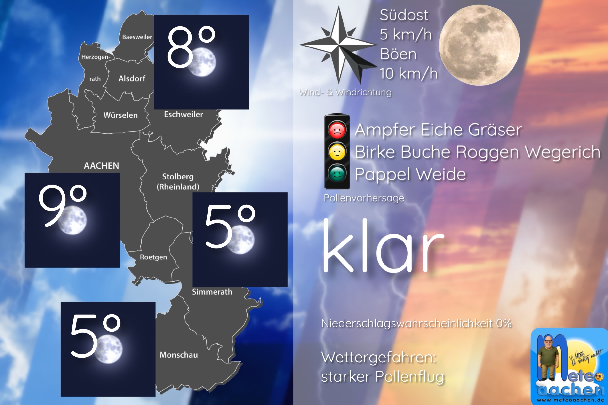 Der Winter verweht Guten Morgen! Hier kommen die Frühwerte aus der Region. Aachen-Forst (KITA-RoKoKo) 12.0 Grad Gemünd-Malsbenden 8.2 Grad Hellenthal-Rescheid 10.4 Grad Hürtgenwaldwetter (Vossenack) 11.1 Grad Linnich (Welz) 11.5 Grad Monschau Haag 10.7 Grad Monschau Mützenich 10.2 Grad Roetgen 11.1 Grad Stolberg Donnerberg 12.9 Grad Der Winter bleibt auch die kommenden 10 Tage verweht. Denn […]