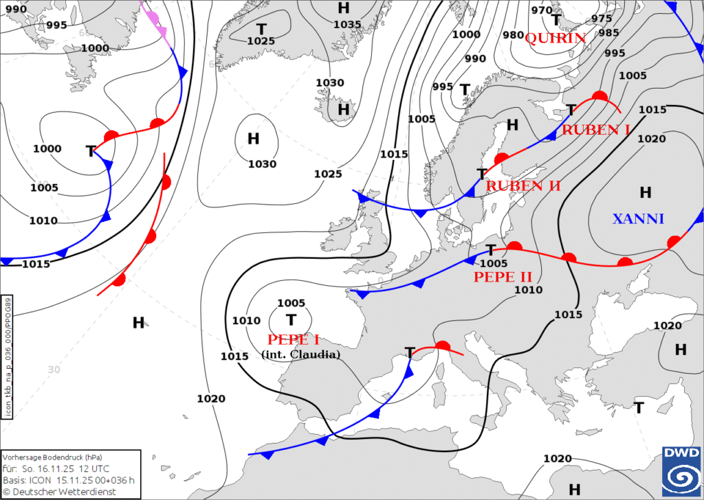 Der Rest der Woche verweilen wir unter einem Trog der immer wieder polare Kaltluft anzapft. So gibt es ordentlich Niederschläge, die zunehmend bis auf etwa 300m als Schnee fallen. Zwischen 500 und 600m herrscht Dauerfrost. Darunter das typische Erkältungswetter.
