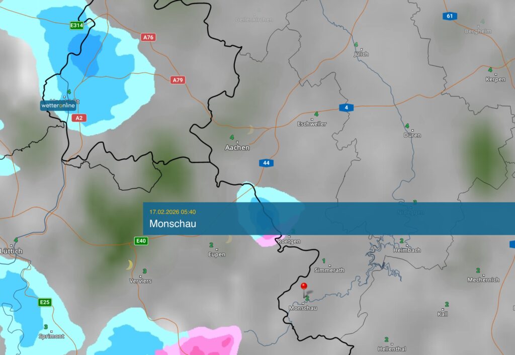 Der Veilchendienstag wird bedeckt. Immer wieder fallen Niederschläge, die ab 400m als Schnee fallen. Ab dem Nachmittag sinkt die Schneefallgrenze langsam auf bis zu 200m ab. Es weht ein stürmischer Nordwestwind. Die Höchstwerte erreichen 2 bis 4 Grad.