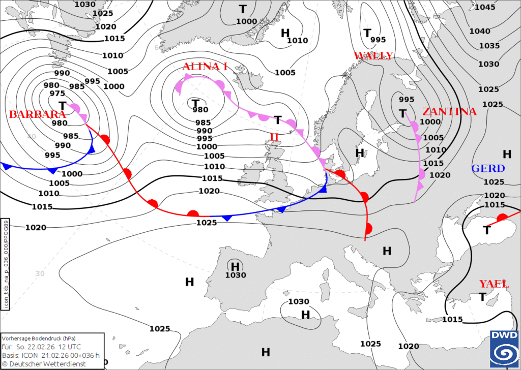 Der Sonntag zeigt sich bedeckt. Es fällt immer wieder Regen, der zeitweise auch kräftig daherkommt. Dazu gibt es einen stürmischen Wind, der in Böen bis zu 60 km/h erreichen kann. Die Höchstwerte liegen zwischen 8 und 11 Grad