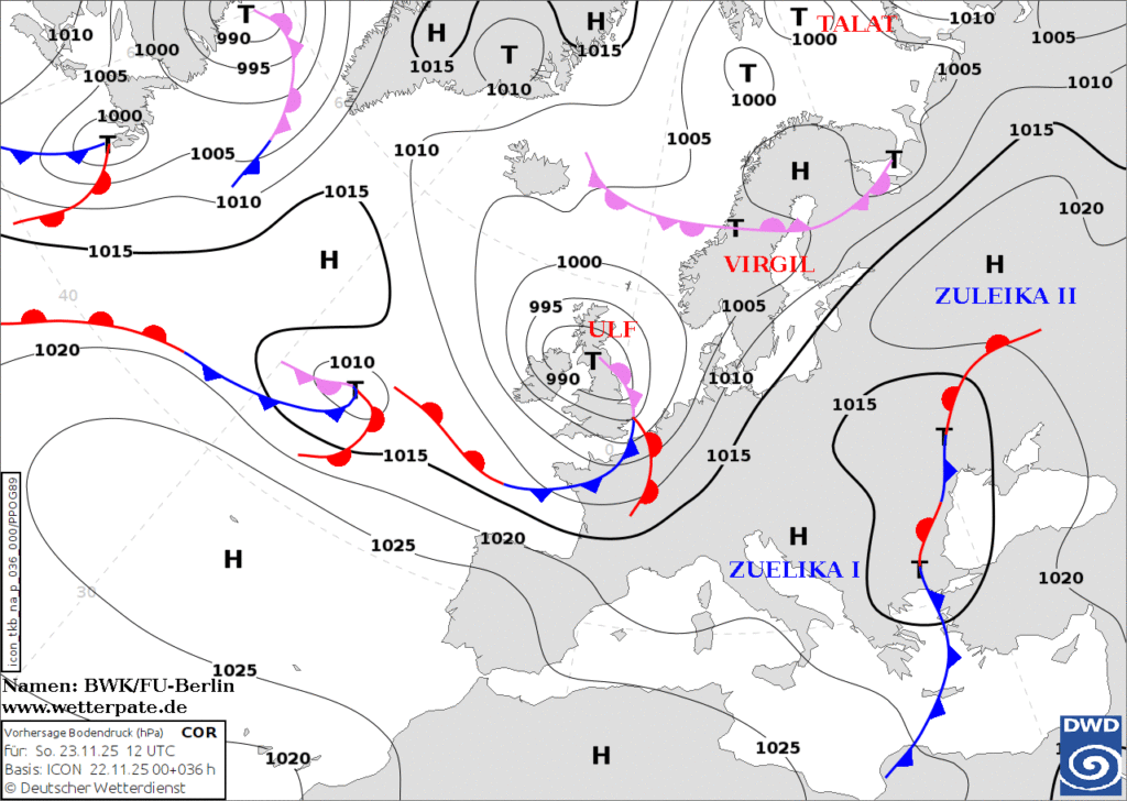 Mach dem eisigen Samstag, wo die Tiefstwerte bei mir bei -9.2 Grad lagen und dem schönen Samstag, ist heute das Grauen zurück. Mr. Gray arbeitet zusammen mit Tief ULF. Der Knabe sorgt für Aufgleitschneefälle in der Eifel und regnerisches Allerlei im Tiefland.