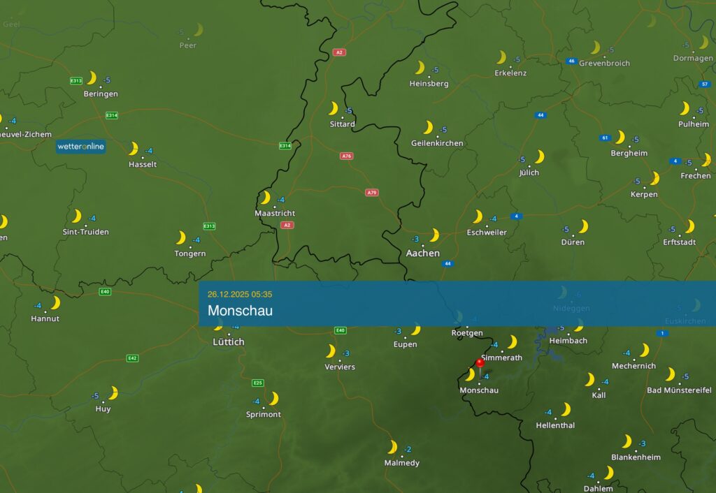 Nach einer wiederum eisigen Nacht wird auch der zweite Weihnachtstag schön. Und es wird auch gefühlt etwas wärmer. Denn der eisige Nordostwind kommt nicht mehr so streng daher und auch die Lufttemperaturen erreichen zumindest im Flachland wieder positive Werte.