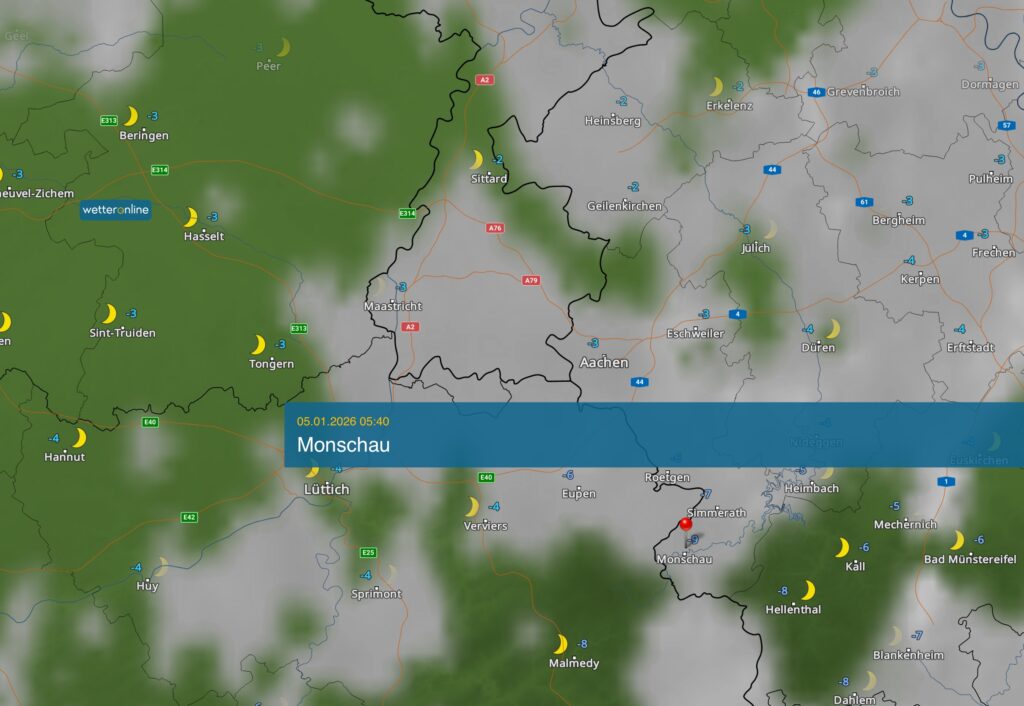 In der Nacht auf Dienstag fällt aus dichter Bewölkung vereinzelt noch ein Schneeschauer. Die Nacht wird mit -4 bis -7 Grad bitterkalt. Über Schnee kann es sogar noch kälter werden.