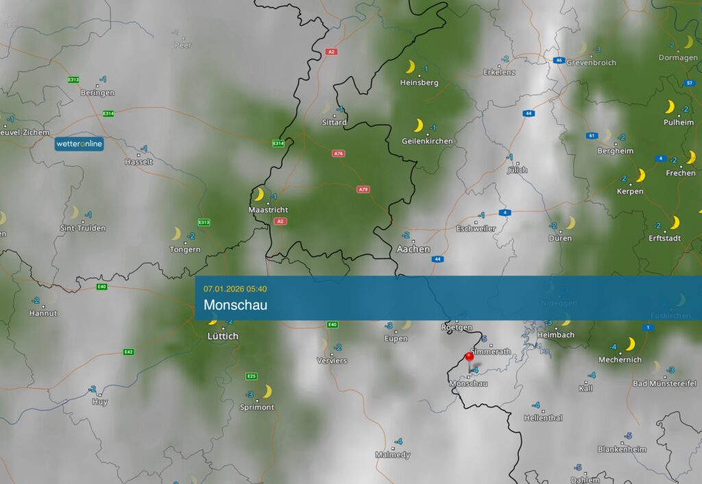 Der Donnerstag startet mit etwas Schneefall, der in den Niederungen rasch in Regen übergeht. Am Abend geht der Schnee dann auch in der Eifel in Regen über. Die Temperaturen steigen bis zum Abend auf 1 bis 3 Grad an.