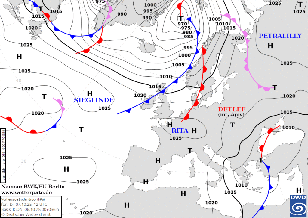 Der Atlantik schläft wieder tief und fest. Für uns bedeutet das ruhige Herbsttage. Da es allerdings kaum Luftdruckgegensätze gibt und eine schwache Warmfront uns heute überquert, bleibt es wie gestern beim Einheitsgrau.
