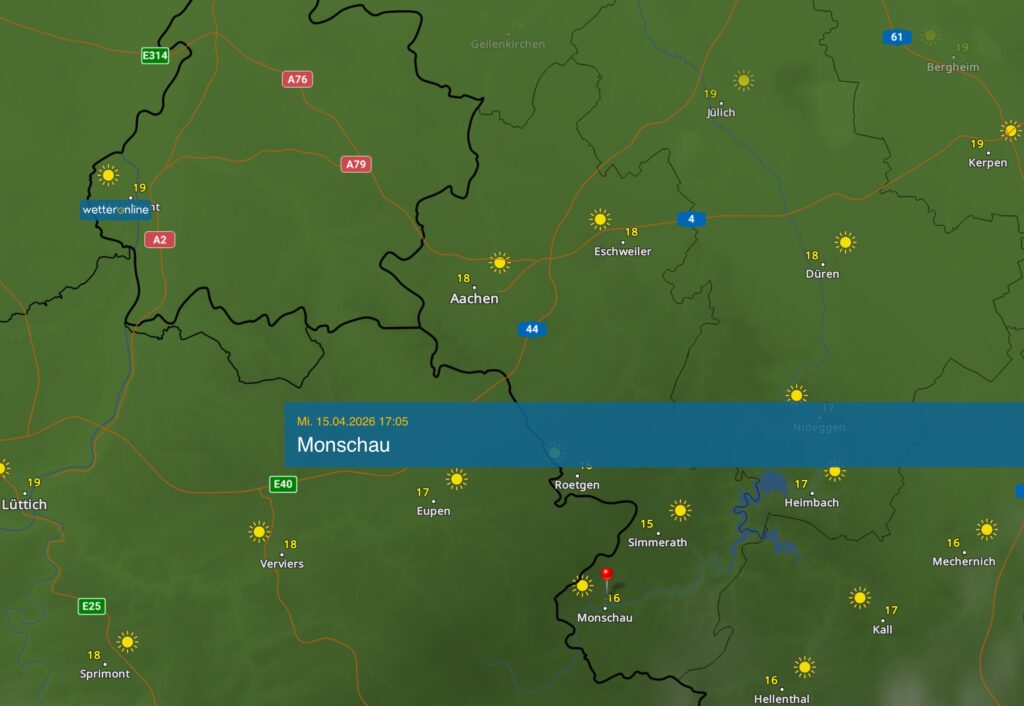 Monschau Mützenich 16.1 Grad 4.4 Grad 15.9 Grad