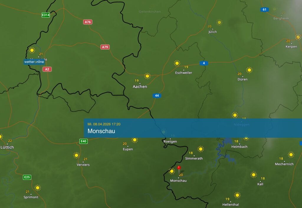 Monschau Mützenich 20.5 Grad 5.8 Grad 19.1 Grad