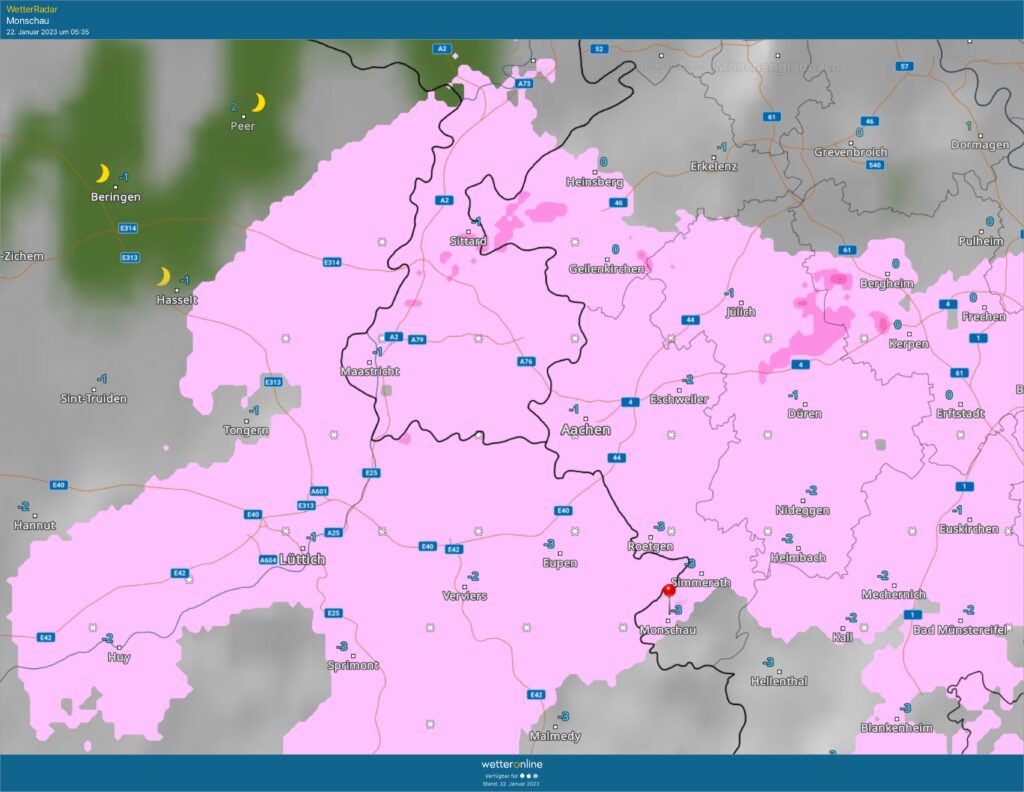 Die Nacht auf Montag wird bedeckt. Der Schneefall ist Geschichte und es kühlt sich auf -3 bis 0 Grad ab.
