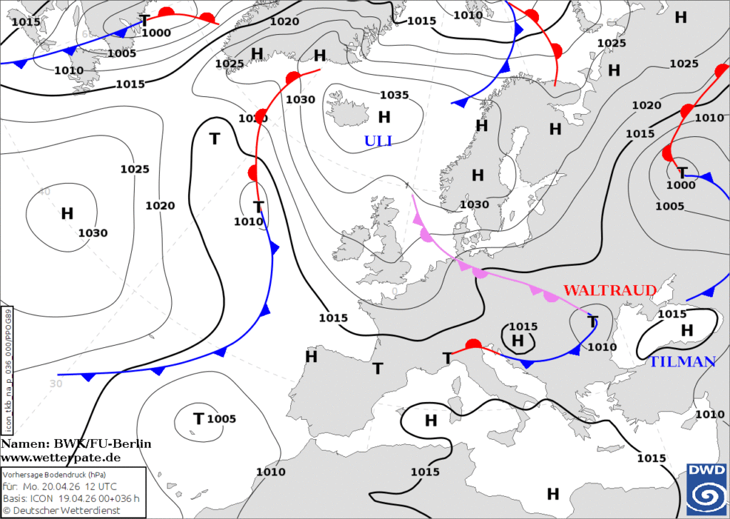 Die eingeflossene Kaltluft kommt diese Woche durch Hoch ULI zur Ruhe. Da der Knabe aber mit seinem Kern über Island liegt, wird weiterhin kühle Meeresluft angezapft. So besteht die ganze Woche Nachtfrostgefahr für mittlere bis hohe Lagen.